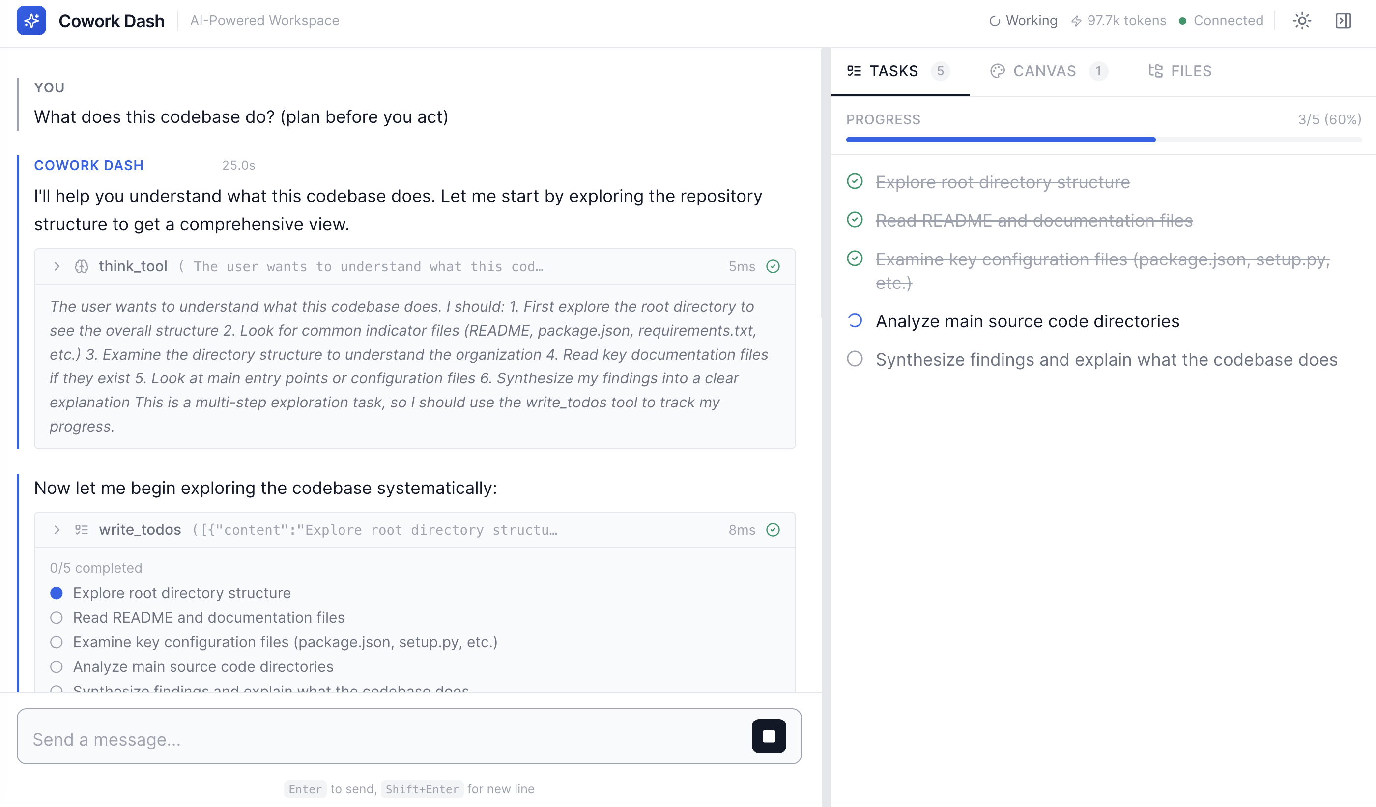 Web UI for LangGraph and deepagents. Chat interface with real-time streaming, tool call visualization, canvas for Plotly/matplotlib/Mermaid, file browser, and…